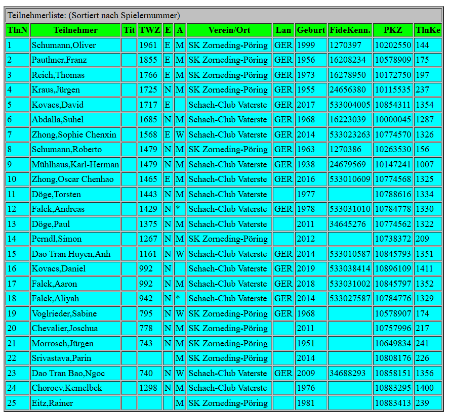 Hier ist die Teilnehmerliste (DWZ-Zahl Stand: 05. November 25)