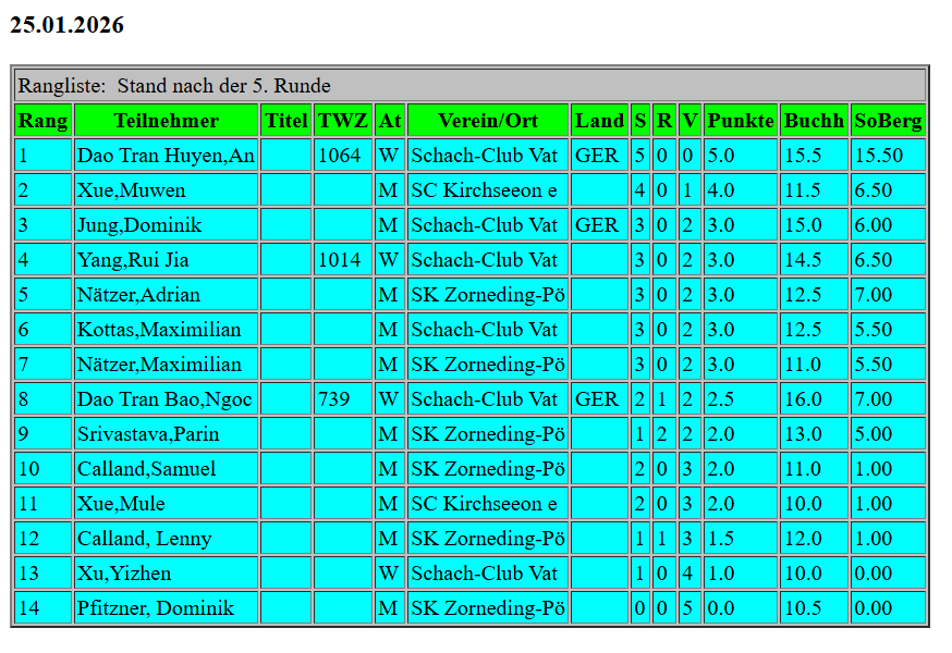 Die Turnierserie geht weiter. Der Vorstand hat entschieden den Kinder des Schachclubs Vaterstetten-Grasbrunn, den Kinder des Schachklubs Zorneding/Pöring und den Kindern des Schachklubs Kirchseeon auch im kommenden Jahr das Schnellschachturnier anzubieten.